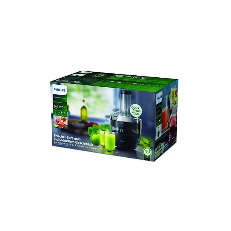 Technologia FiberBoost pozwala wybrać konsystencję soku za pomocą przycisku — od orzeźwiającego, klarownego soku po bardziej kremowy z zawartością miąższu większą nawet o 50%. Unikalne połączenie inteligentnego sterowania stałymi prędkościami z wyjątkową konstrukcją sitka umożliwia uzyskanie większej lub mniejszej ilości miąższu w soku, dzięki czemu każdy może cieszyć się sokiem przygotowanym tak, jak lubi.
