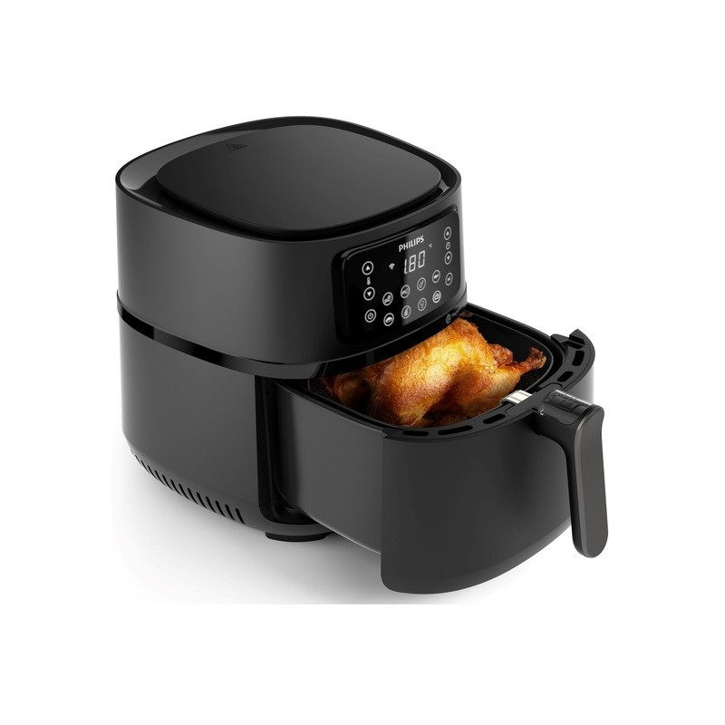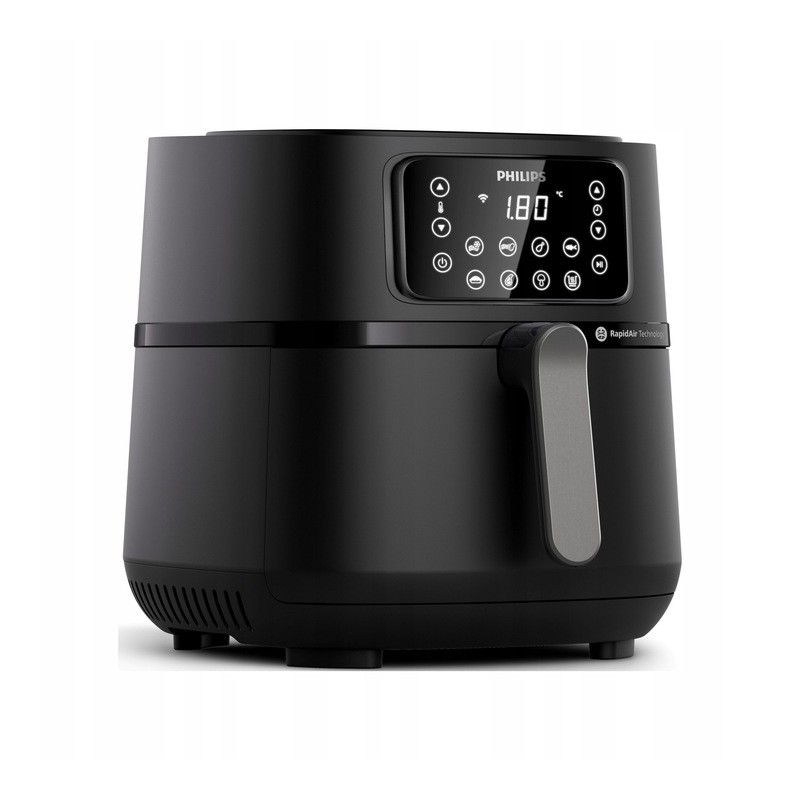 Zaawansowane sterowanie umożliwia dokładne ustawienie czasu i temperatury, a funkcja podtrzymywania ciepła pozwala cieszyć się gotowym posiłkiem dokładnie wtedy, gdy jesteś na to gotowy. Frytkownica współpracuje również z aplikacją Philips NutriU, która podpowiada przepisy i pozwala sterować urządzeniem zdalnie. Elegancki design, intuicyjny panel dotykowy oraz łatwe czyszczenie sprawiają, że HD9285/93 to praktyczny i nowoczesny element każdej kuchni.