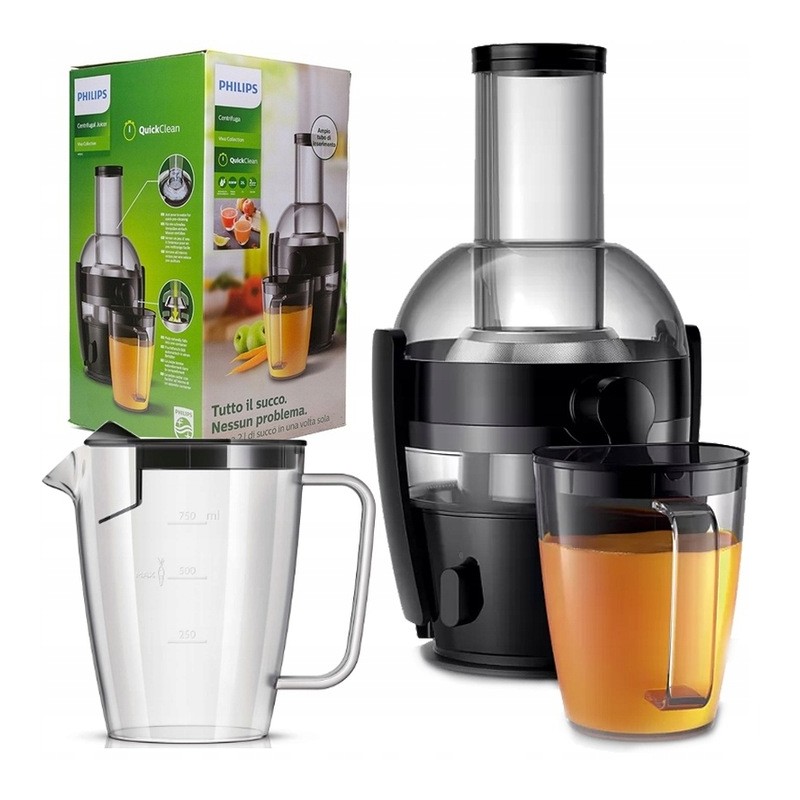 Sokowirówka firmy Philips została zaprojektowana z myślą o łatwym czyszczeniu - w tym celu zastosowano technologię QuickClean. Dzięki zintegrowanemu pojemnikowi na miąższ i gładkim powierzchniom czyszczenie można teraz wykonać w ciągu 1 minuty.