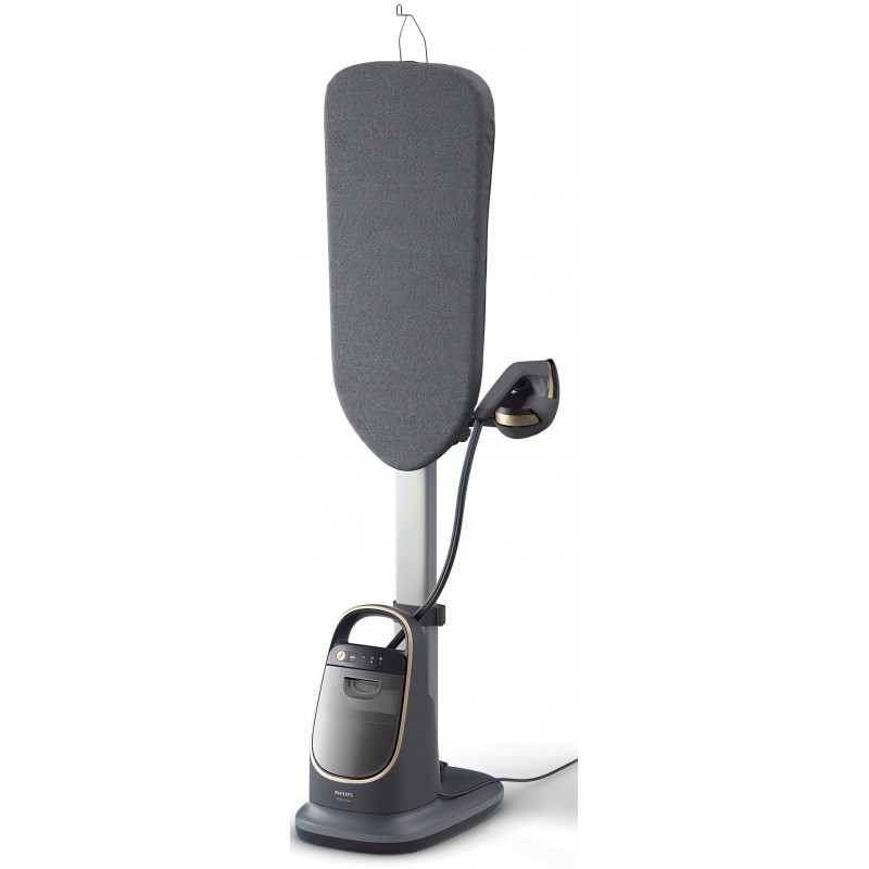 Urządzenie All-in-One serii 8500 firmy Philips to przełomowe rozwiązanie, które wprowadzi pozytywną rewolucję w wyglądzie Twoich ubrań. To urządzenie do usuwania zagnieceń i prasowania jest łatwe w obsłudze i zapewnia niesamowitą wydajność, dzięki czemu sprawnie usuniesz wszystkie zagniecenia i zaoszczędzisz czas. Zintegrowaną, zwężaną deskę z dużym zakresem regulacji można dowolnie obracać, co zwiększa wygodę prasowania. Ustaw deskę w poziomie do prasowania sztywnych tkanin, w pionie, aby prasować delikatniejsze ubrania, lub w dowolnej innej komfortowej pozycji. Technologia Dual Heating tworzy potężny strumień pary, który skutecznie usuwa wszelkie zagniecenia. Jest to rozwiązanie wydajniejsze niż żelazko parowe, dzięki któremu Twoje ubrania będą wyglądać olśniewająco. Ergonomiczna głowica Iron+ - nawet dwukrotnie lżejsza niż zwykłe żelazko parowe - sprawia, że prasowanie ubrań jest jeszcze wygodniejsze.