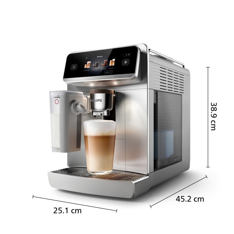 Nasz łatwy w obsłudze, intuicyjny wyświetlacz TFT 4,3" pozwala wybrać przepis i dostosować moc aromatu i kawy oraz ilość mleka. Chcesz zachować ustawienia na później? Zapisz wybraną przez siebie kawę w jednym z dwóch profili użytkownika.