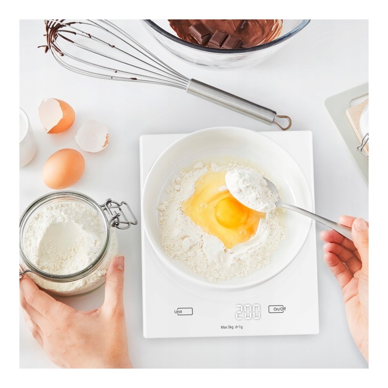 Dokładny pomiar dla kolejnych składników bez konieczności opróżniania misy. Zresetuj wagę i dodaj kolejne produkty i ułatw sobie proces odmierzania proporcji składowych.