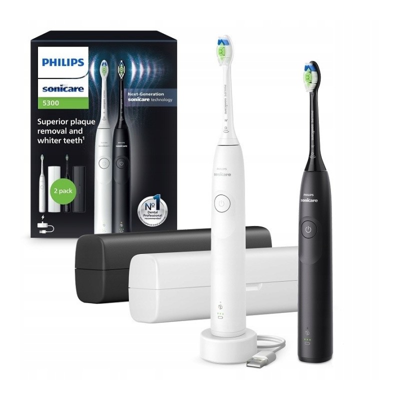 Philips Sonicare 5300 zapewnia nie tylko głębokie czyszczenie, ale także skutecznie usuwa przebarwienia powierzchniowe, dbając o bielszy i zdrowszy uśmiech. Główka szczoteczki W2 Optimal White pomaga utrzymać efekt wybielenia między profesjonalnymi zabiegami, a jednocześnie usuwa do 7 razy więcej płytki nazębnej niż manualna szczoteczka.